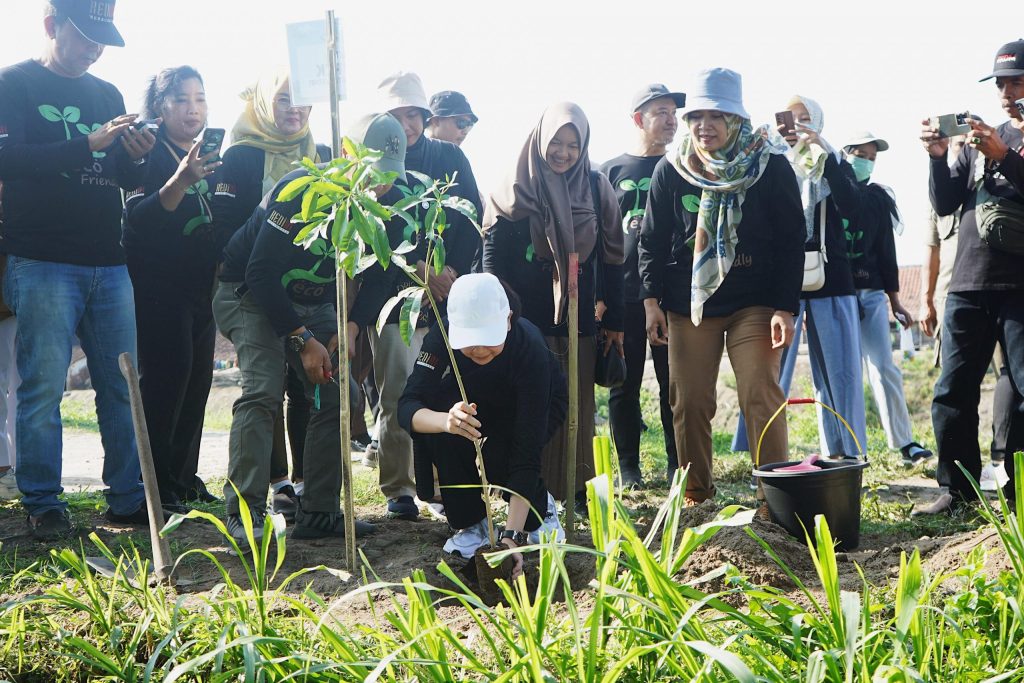 KEDIRI | Hujan yang mulai turun dalam beberapa pekan terakhir dimanfaatkan Ketua Tim Penggerak (TP) PKK Kabupaten Kediri Eriani Annisa Hanindhito untuk mengajak kaum perempuan melakukan aksi tanam pohon.