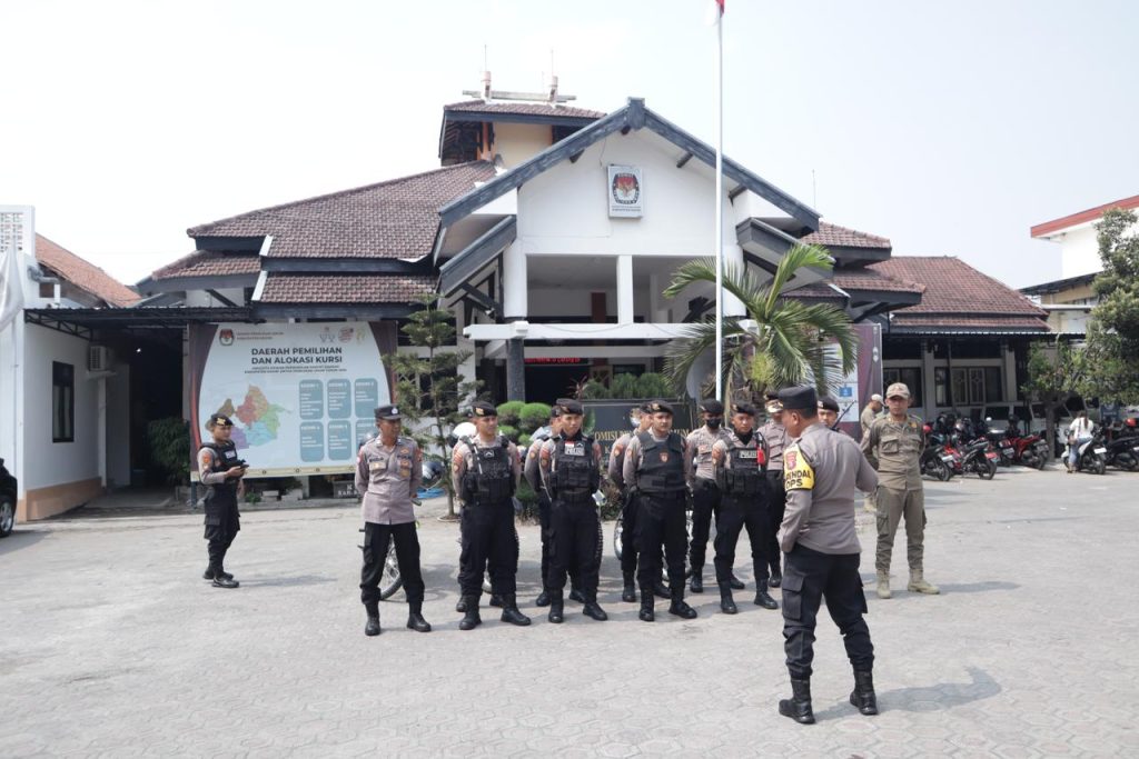 KEDIRI|Sejumlah personel Polres Kediri Polda Jatim memadati kantor Komisi Pemilihan Umum (KPU) Kabupaten Kediri, Jum’at (3/11/2023).