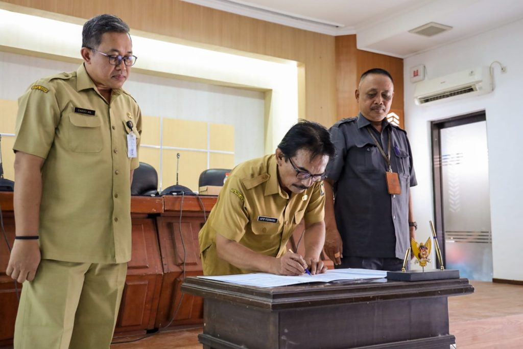 FOTO : Kepala Badan Perencanaan Pembangunan Daerah, Chevy Ning Suyudi bersama Kepala Dinas Komunikasi dan Informatika Apip Permana serta Kepala Badan Pusat Statistik, Parjan telah menandatangani berita acara kesepakatan data prioritas tahun 2024 (dok)