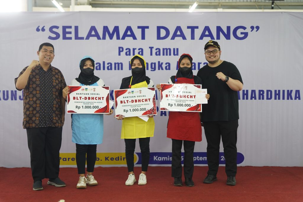 Didampingi instansi terkait di Pemerintah Kabupaten Kediri dan pihak manajemen pabrik, kedatangan bupati muda yang akrab disapa Mas Dhito itu untuk menyerahkan bantuan langsung tunai (BLT) dana bagi hasil cukai hasil tembakau (DBHCHT) kepada buruh pabrik rokok.